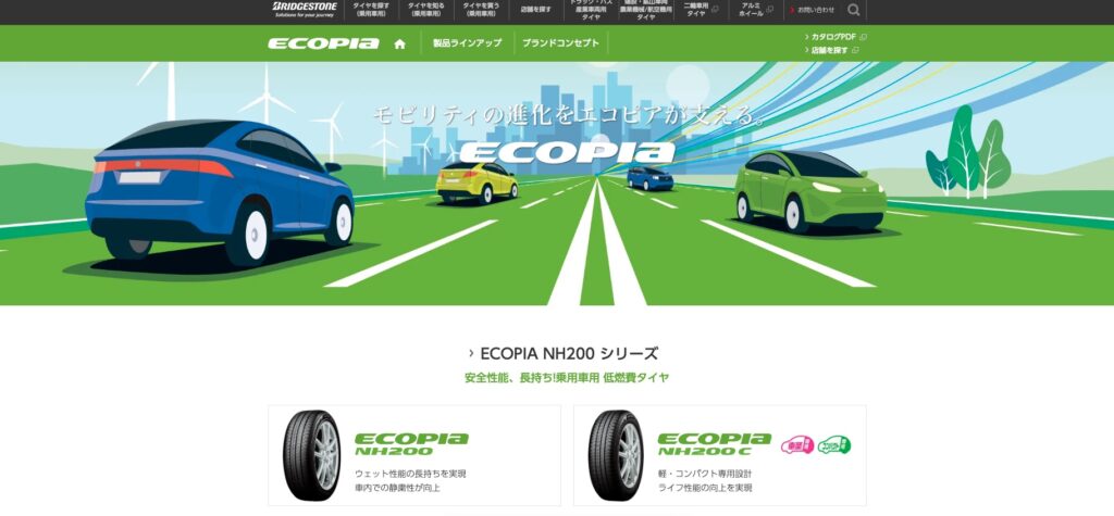 エコピア(ECOPIA)は、ブリヂストンの基準となる次世代のスタンダードタイヤです。「低燃費」「直進安全性」「長持ち」という3つの柱を高い次元でバランスさせています。