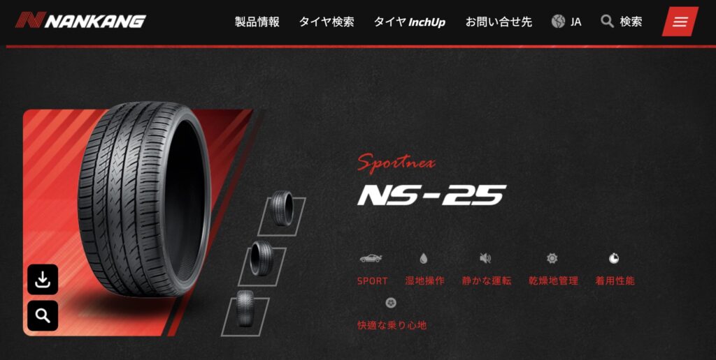 NS-25は台湾のタイヤメーカー、ナンカンが提供するスポーツプレミアムタイヤです。同社のベストセラーであるスポーツタイヤ「NS-2」のグリップ性能と、コンフォートタイヤ「AS-1」の快適性を融合させた設計が特徴。